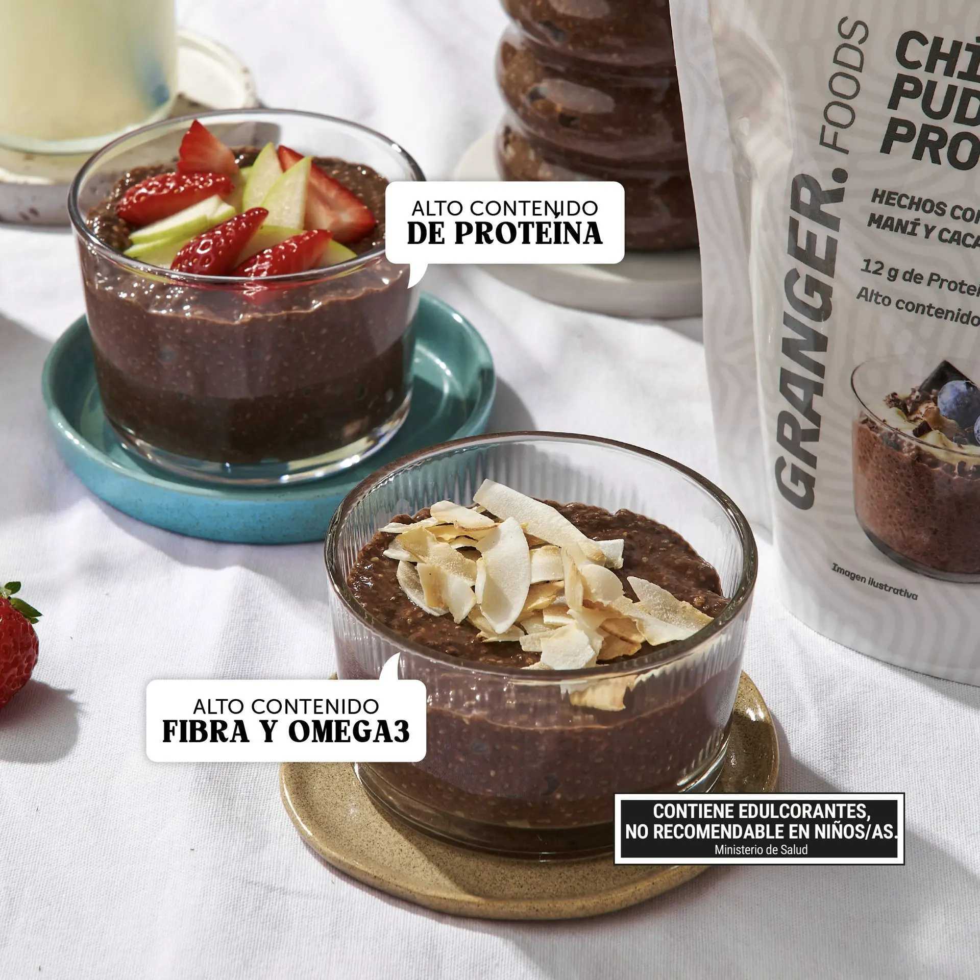 Gracias a las propiedades naturales de la chía, este pudding es una excelente fuente de fibra y proteína vegetal, ideal para consumir como desayuno, snack o postre saludable. Sin grasas trans y con bajo contenido de grasas saturadas, es perfecto para quienes priorizan una alimentación consciente y funcional. Descubrí una forma natural, práctica y deliciosa de nutrirte diseñada para acompañar tu ritmo diario,ideal para sumar energía limpia a tu día.